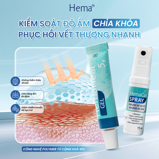 Thay vì chỉ xử lý triệu chứng bên ngoài, Hema tác động trực tiếp đến môi trường lành thương, giúp kiểm soát phản ứng viêm và hỗ trợ mô tổn thương phục hồi theo đúng cơ chế sinh lý tự nhiên của cơ thể.