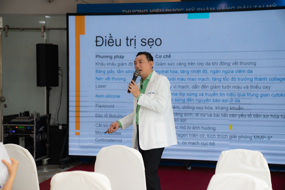 Mở đầu chương trình là bài báo cáo vô cùng hấp dẫn về “Sinh lý sẹo và chăm sóc vết thương” của BS.CKI Nguyễn Thanh Trường, bác sĩ đại diện Rejuvaskin Việt Nam. Với kinh nghiệm 15 năm kinh nghiệm trong lĩnh vực Da liễu - Thẩm mỹ, BS.CKI Nguyễn Thanh Trường mang đến một cái nhìn tổng quan quản lý và chăm sóc sau phẫu thuật: từ giai đoạn vết thương hở đến hình thành sẹo.